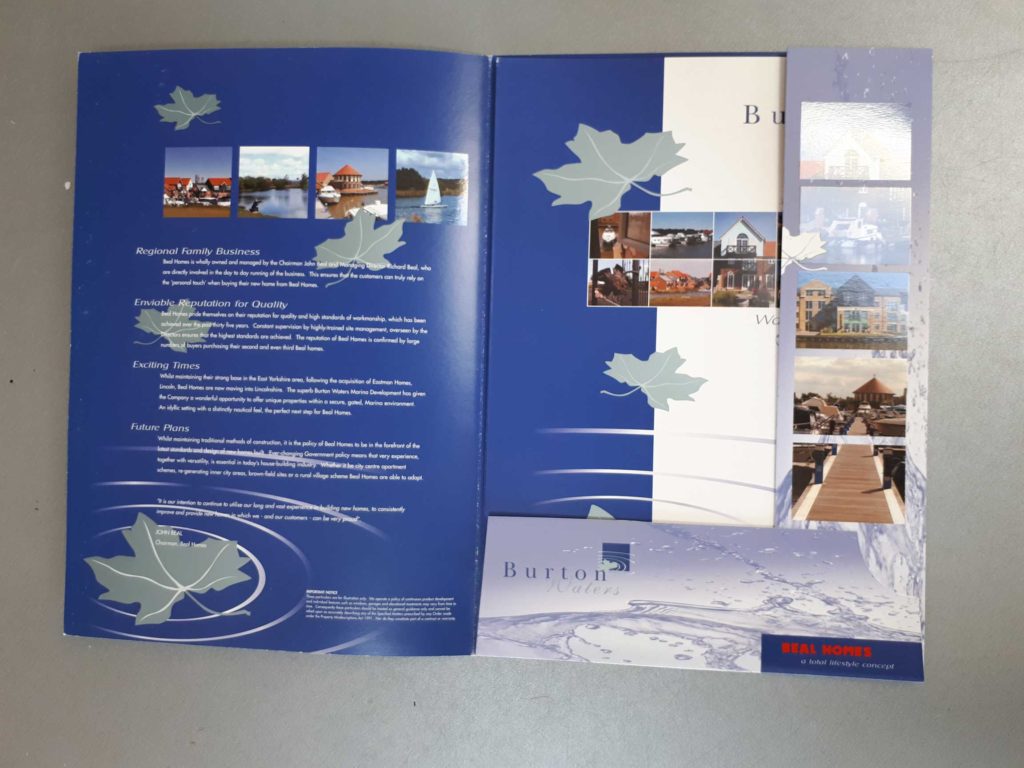 We work alongside Greystones Design & Architecture, which means that there is an overlap in skills which can be most useful. Graphica produce brochures and supporting sales literature for housing developments. We have designed many folders incorporating photography, illustration and fancy print finishes, such as matt lamination with gloss UV varnish to pick out and highlight elements. We also prepare pull up banners and full scale exhibition stands to accompany the branding exercise.